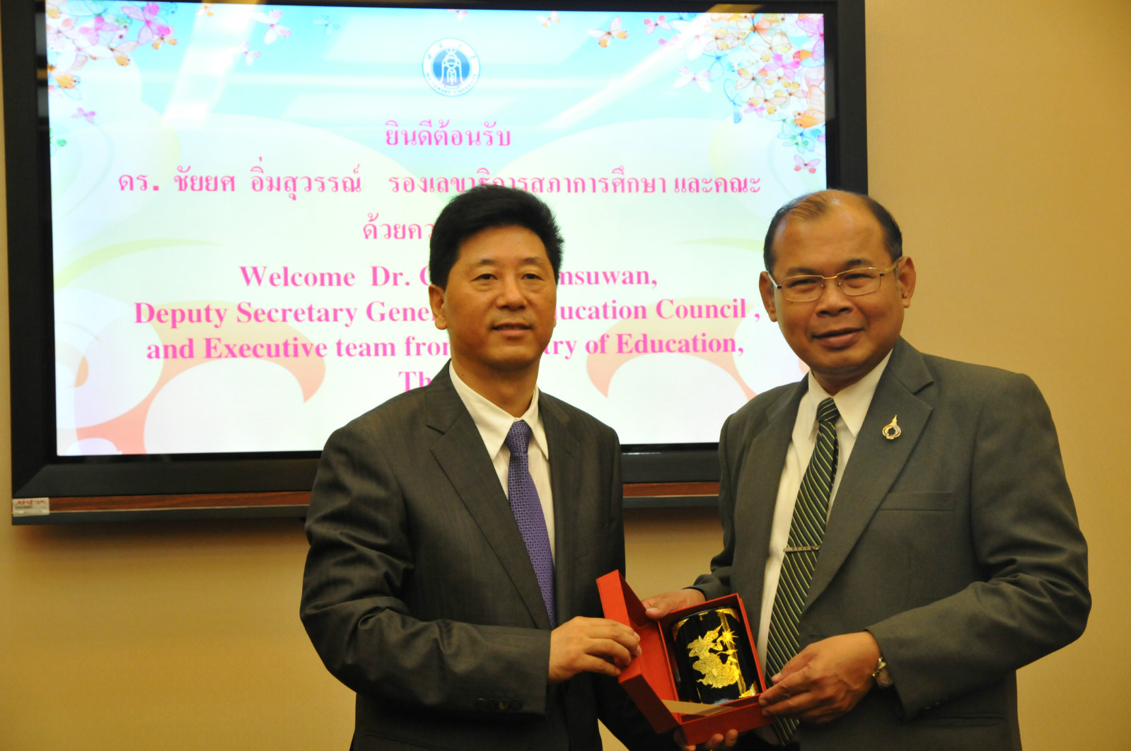 副次长CHAIYOSH IMSUWAN先生感谢靳校长的热情欢迎,并表示中国的教育改革已进行多年,取得的成就令人瞩目,此次访学主要就是来认真学习、仔细考察、深入交流,充分借鉴学校和中国的成功经验,增进双方教育合作和交流。