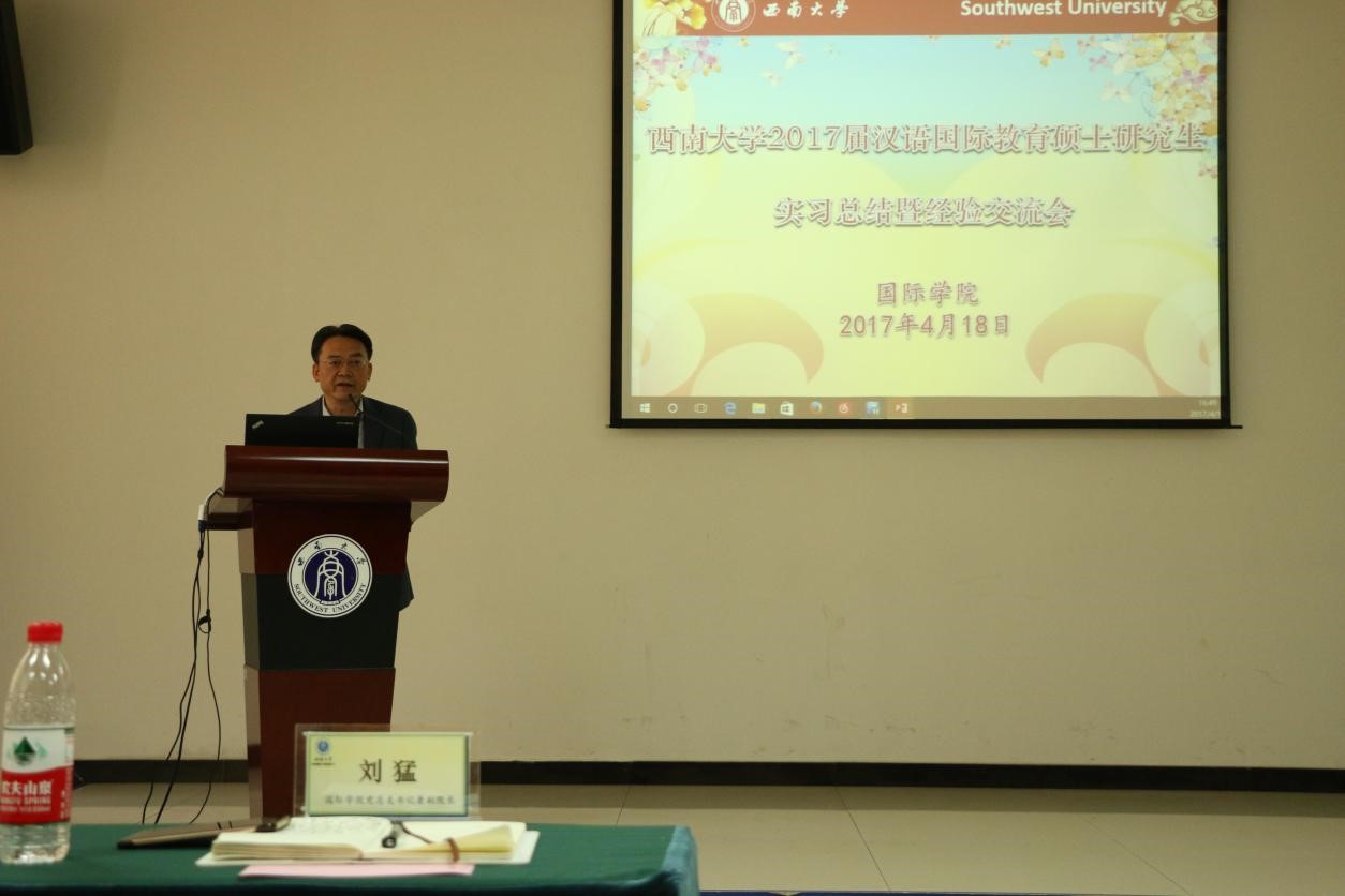 伟的国际1946bv党总支书记刘猛在发言中指出,目前全球汉语教学影响日益扩大,将会有更多的学生加入汉语学习的队伍当中,希望汉语国际教育硕士的海外实习基地建设能够突出特色、形成亮点,也希望实习回来的同学和即将赴海外实习的16级学生能够坚定从业信念,积极投身汉语国际推广事业之中。