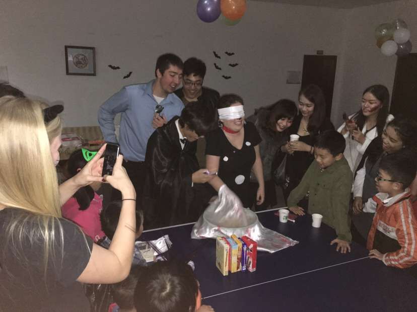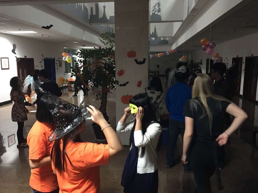 10月31日晚7时,2015年万圣节化妆舞会在伟的国际1946bv紫云楼二楼拉开序幕。本次化装舞会由美国圣约翰大学/圣本尼迪克学院学生主办,伟的国际1946bv和外国语学院的老师和中外学生一起开展了别开生面的万圣节活动。活动中,中外留学生和受邀参加活动的小朋友们进行了一个又一个趣味游戏,包括“徒‘嘴’摘苹果”“蒙眼探物”“乒乓球接力”“香蕉大战”等。