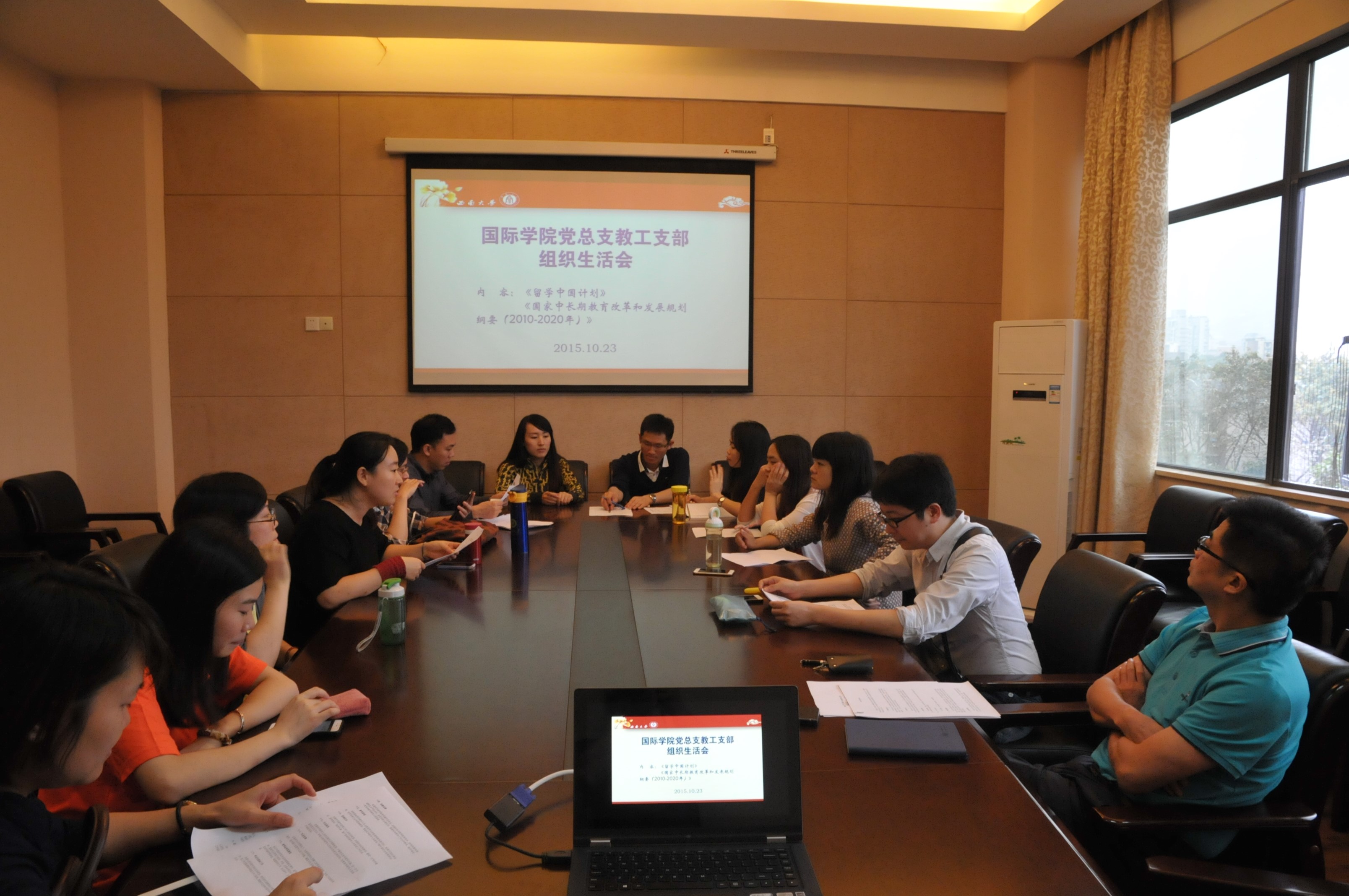 2015年10月23日下午3:00,伟的国际1946bv教工党支部在紫云楼310、305会议室开展党组织生活会。