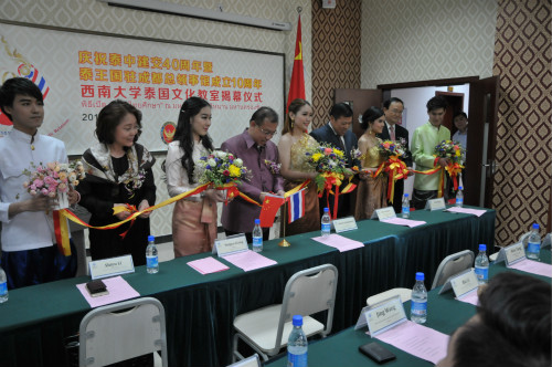 泰国驻成都总领事馆总领事郭梅特先生,市政府外事侨务办公室巡视员陈高山、领事处处长范青,市教委国际合作与交流处处长李世玉,我校校长张卫国等出席教室揭幕仪式。