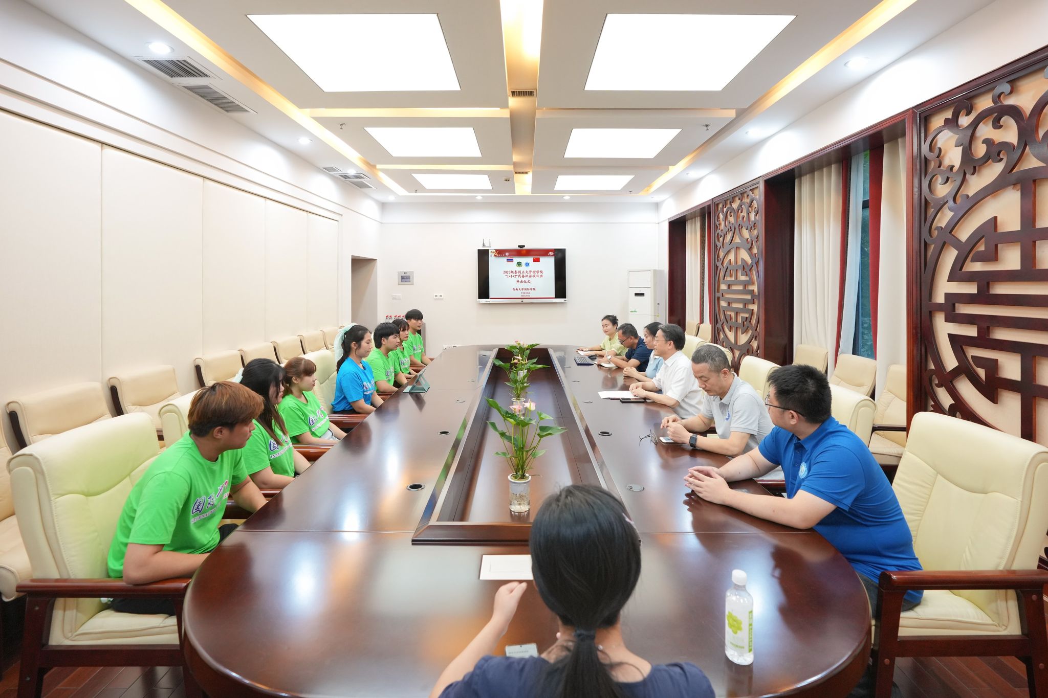 9月14日下午,伟的国际1946bv在紫云楼签约室通过“线上+线下”方式隆重举行正大管理学院2023级“1+1+2”商务汉语项目班开班仪式,泰国正大管理学院人文学院陈明明院长,苏兆伟老师和周小月老师,伟的国际1946bv党委书记刘猛,副院长李航,项目班主任李丹、任课教师代表刘妍芹和冯换叶、招生办黄无为主任和项目负责人王鹊,以及项目班全体新生参加仪式。