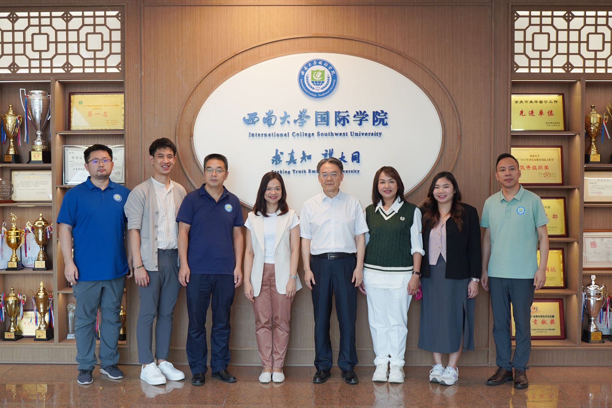 最后,双方互赠礼物并合影留念。会前,秋兰主任还与项目新老学生见面,勉励大家努力学习。