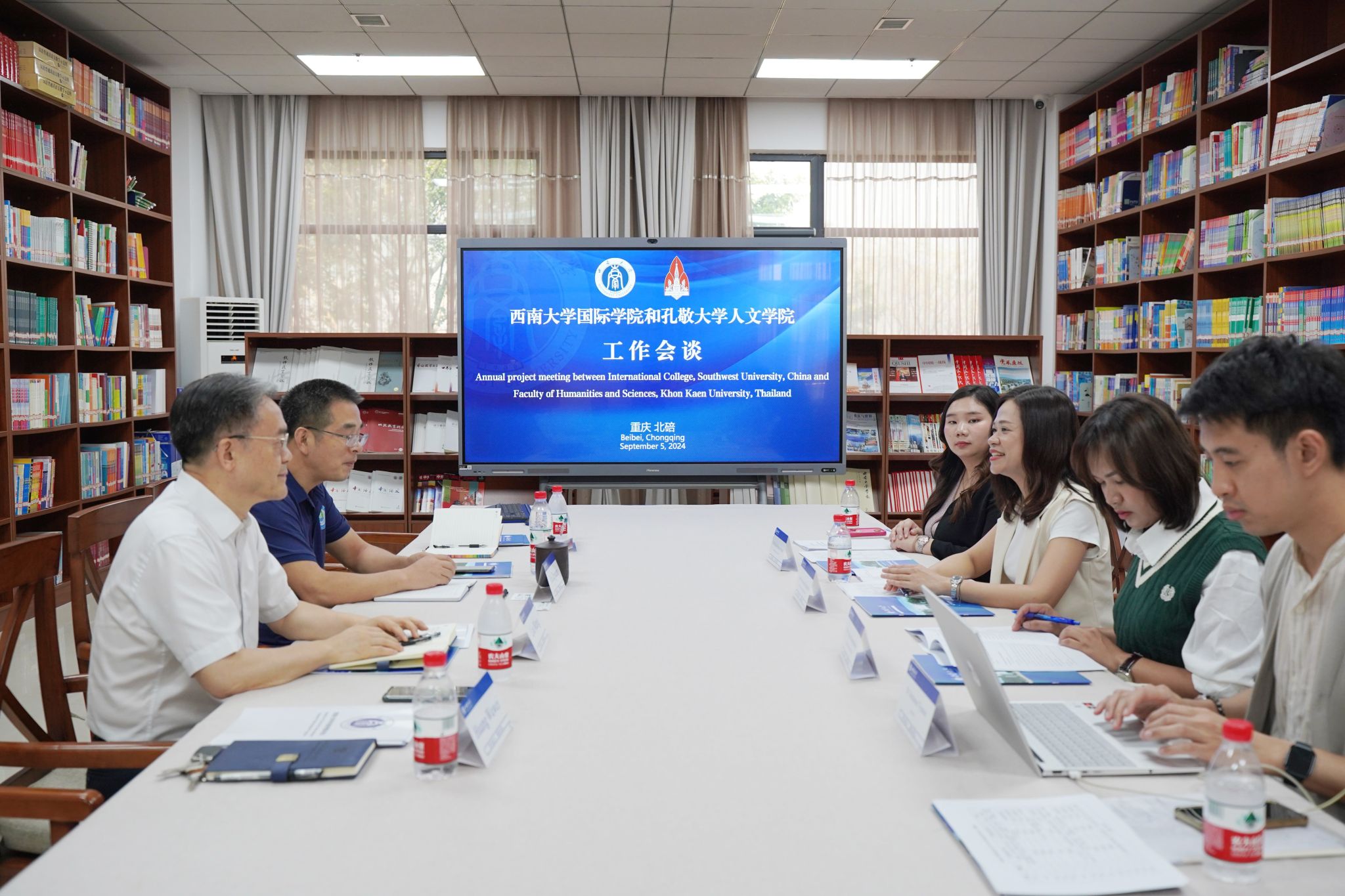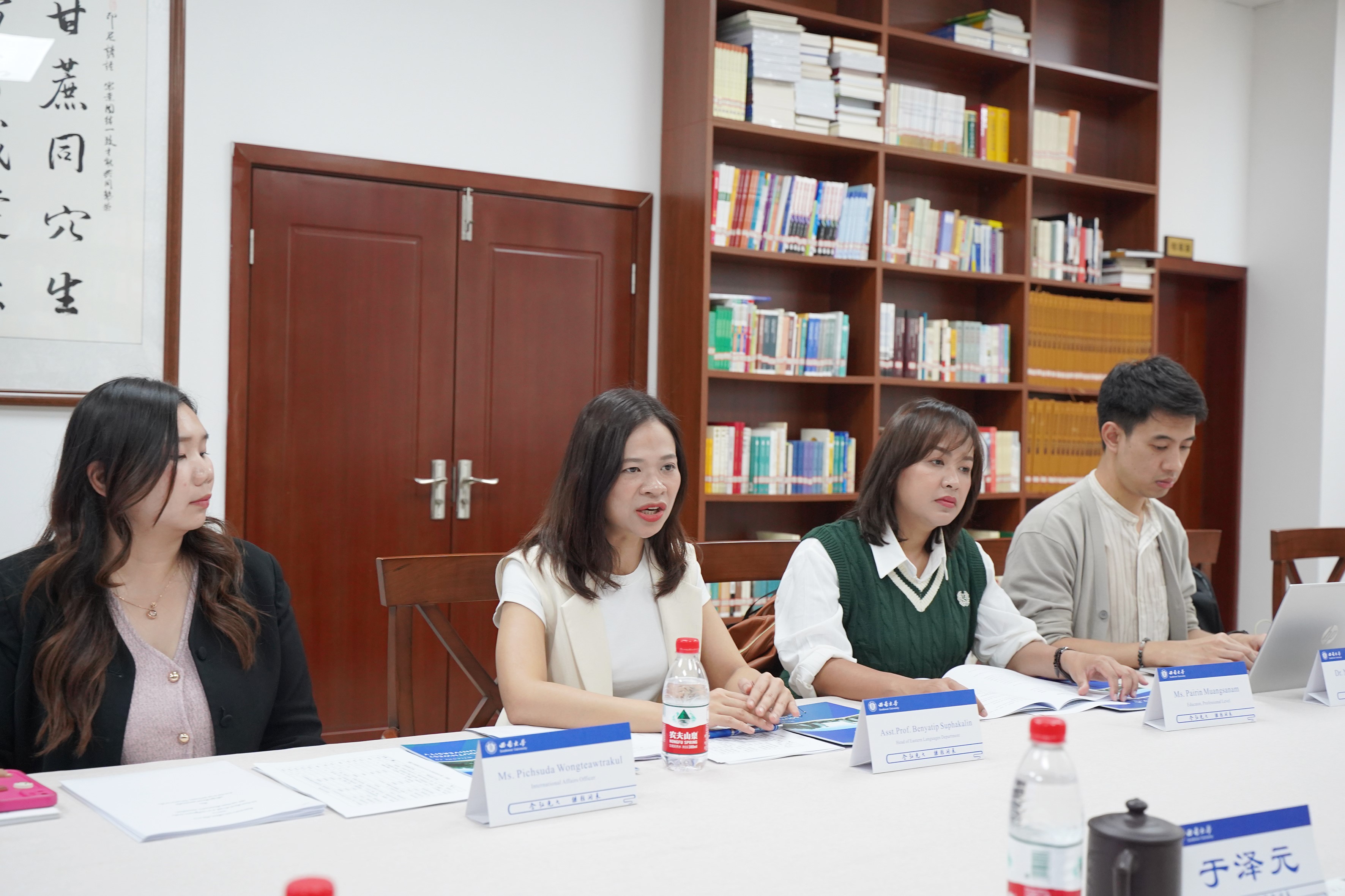 耿军副院长和黄无为主任就预科项目和短期团组等事宜与泰方进行交流。
