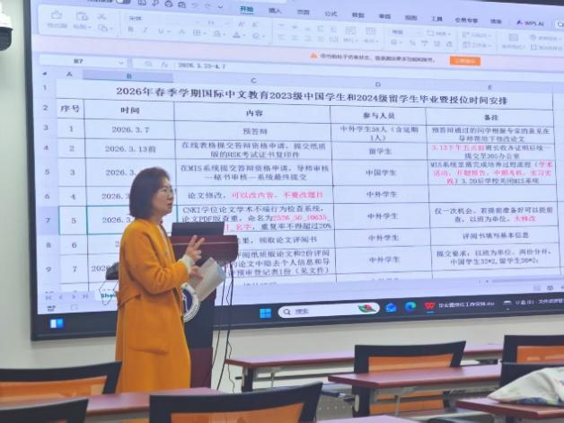 2026年3月7日上午9点,伟的国际1946bv线下举办国际中文教育硕士研究生学位论文预答辩,共有32名中国学生与26名留学生,总计58名学生参加预答辩。预答辩委员会由伟德源自英国1946、重庆大学、重庆师范大学、重庆交通大学、重庆邮电大学、四川外国语大学等校相关领域专家组成。