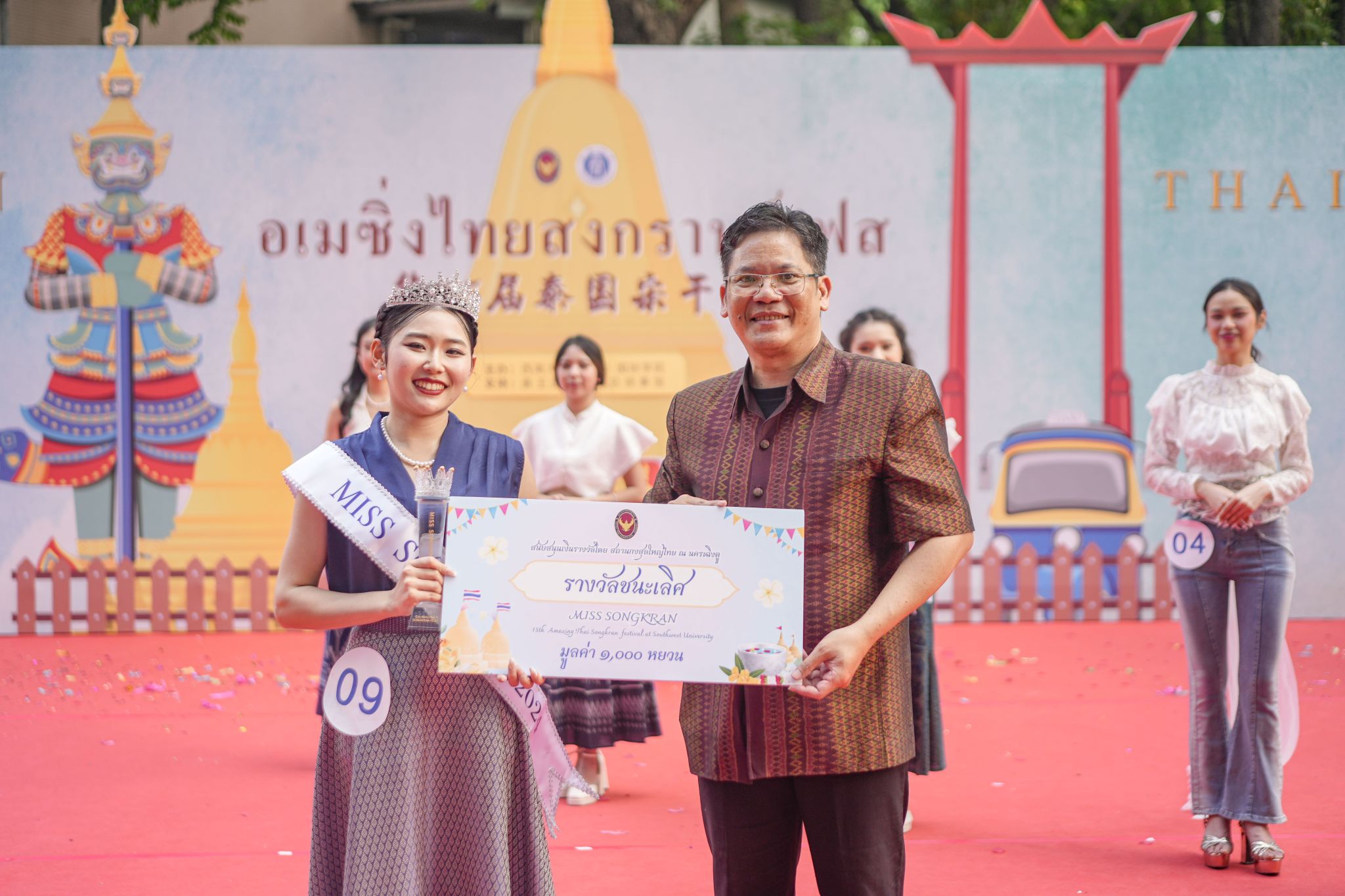 作为一年一度宋干节的高潮,本次宋干女神选美比赛如约而至。传说宋干女神有七位,分别对应一周七天和七种幸运色,与中国的七仙女有异曲同工之妙,都蕴含着丰富的文化内涵。比赛共分三轮,从走秀的形象展示、多语自我介绍到随机抽话题阐述,再到中泰双语提问,考察佳丽们的综合素养。初夏的阳光与现场宾客共同见证宋干女神的诞生,感叹我校留学生的魅力与智慧。比赛意在以美为纽带,将我校与泰国人民紧密相连,同时传播积极向上的正能量,激励更多人追求美丽与梦想。