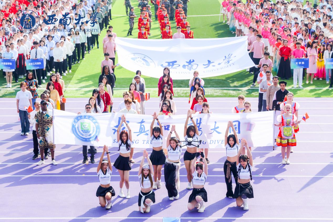 当伟的国际1946bv方阵行至主席台前,方阵代表们展开“求真知,谋大同”的院训横幅,彰显着学院的教育理念与文化追求。紧随其后,留学生舞蹈团精彩亮相,她们用充满活力的舞蹈,展现了伟的国际1946bv来华留学生的青春风采,赢得了观众席上阵阵热烈的欢呼与掌声。学院方阵的整体设计,不仅体现了伟的国际1946bv师生的团结协作,更彰显了学校来华留学教育事业的蓬勃生机与多元文化融合的教育成果。