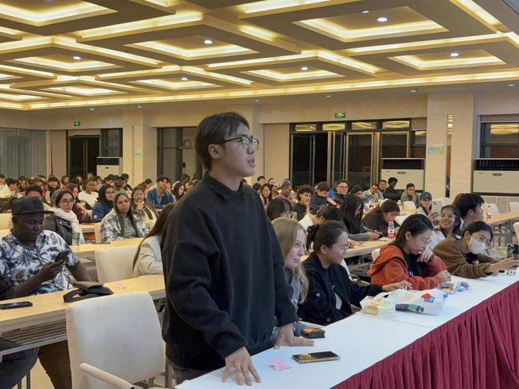 刘怡菲老师以一个生动且贴近国际学生日常经历的留学生采访视频作为开场白,瞬间激发了全场学生的共鸣与参与热情。她围绕适应性主题,深入阐释了适应的概念和过程,通过提问的互动方式与同学们探讨了国际新生来到中国求学可能遭遇的文化冲击、语言障碍、生活方式的转变等适应问题。在互动发言阶段,大家纷纷敞开心扉,分享起自己在适应新环境过程中的点点滴滴。