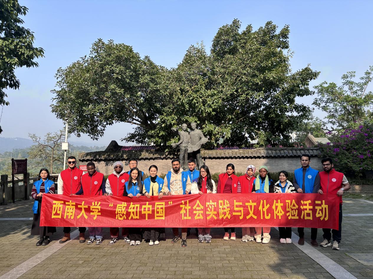 活动伊始,留学生们在卢作孚纪念馆集合,身着统一的活动服装,开启了一段跨越时空的文化之旅。纪念馆内,讲解员详细讲述了卢作孚先生在乡村建设中的伟大实践与无私奉献精神,激励学生们深入思考乡村振兴的历史根基。在馆内外寻找卡片的趣味环节中,大家通力合作,以答题促新知,进一步加深了对中国乡村建设早期探索的认识,心中的敬意油然而生。