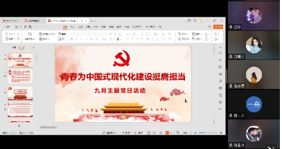9月8日晚20:00,伟的国际1946bv研究生第一党支部及2022级入党积极分予以线上腾讯会议形式开展“青春为中国式现代化建设挺膺担当”主题党日活动。