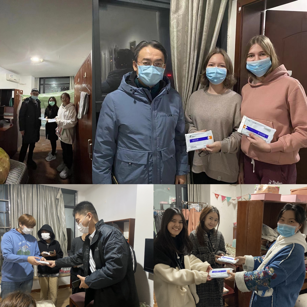 据悉,学校自11月4日突发疫情以来,刘猛书记以及4位辅导员第一时间进驻校园,与国际学生同吃同住,组织他们有序参加核酸检测,帮助他们采购棉被等防寒物资,并及时派发防疫物资。国际学生纷纷表示,感谢学院对他们无微不至的照顾,相信在大家的努力下,学校一定能战胜疫情、早日恢复正常。