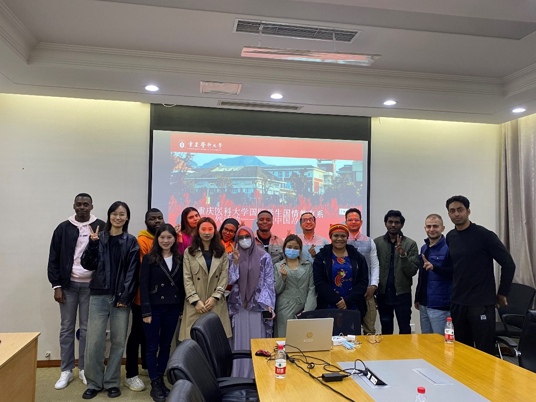 2022年10月27日上午9:30,“缙云知华”大讲坛第八期在重庆医科大学第二教学楼309室成功举办,主题为“当代中国故事:中国国际医疗援助,构建人类健康共同体”,由重庆医科大学附属第二医院心内科副主任医师陈国柱主讲,重庆医科大学在校国际学生代表现场聆听,全市其他高校国际学生通过腾讯会议线上观看。