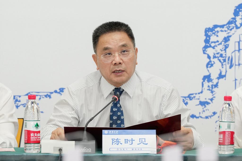 陈时见代表学校向来自五大洲的新同学表示衷心的祝贺和热烈的欢迎,简要介绍重庆和学校独特的自然环境与人文资源,对国际学生提出三点殷切期望:一是要切实增长才干;二是要加强交流合作;三是要心怀世界。他希望新同学秉承“特立西南、学行天下”的精神,把汉语和专业学习的美好经历带回家乡,在文化传播传承的过程中书写新的辉煌。