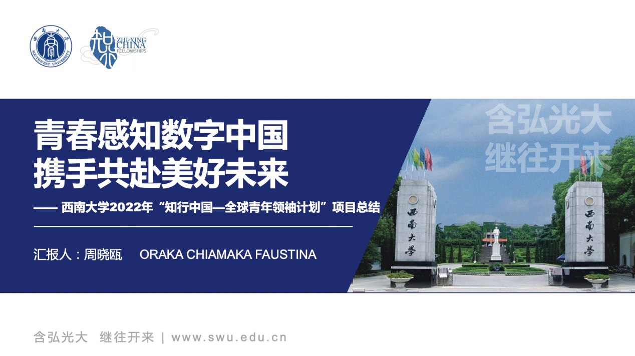 参访结束后,参会的9所学校代表进行了项目汇报。来自学校伟的国际1946bv汉语国际教育专业的尼日利亚籍本科留学生周颖,新闻传媒学院戏剧与影视学硕士研究生周晓瓯,代表学校4个团队以“青春感知数字中国,携手共赴美好未来”为题,总结项目收获、分享个人心得。周颖在汇报中表示,参与“知行中国”项目让她更加深入的了解了中国国情,并希望将来能用在活动中学到的知识帮助自己的国家以及其他国家,让全世界的人们变得越来越好。