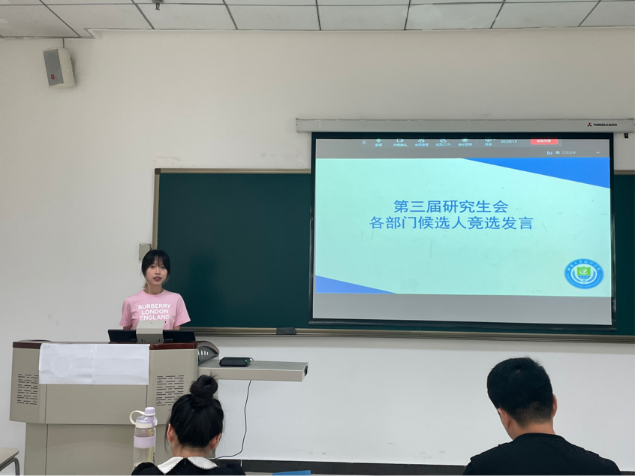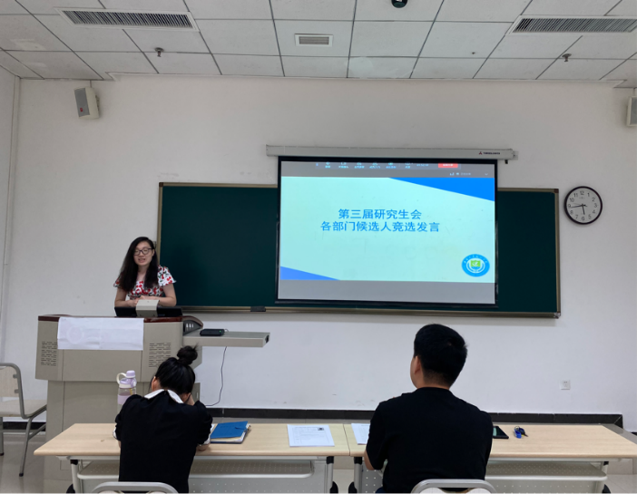 第三届研究生会各部门候选人依次从自我介绍、竞选原因、自身优势等方面展开竞选发言。投票环节采取线上、线下匿名民主投票方式,充分保证选举的公平公正。