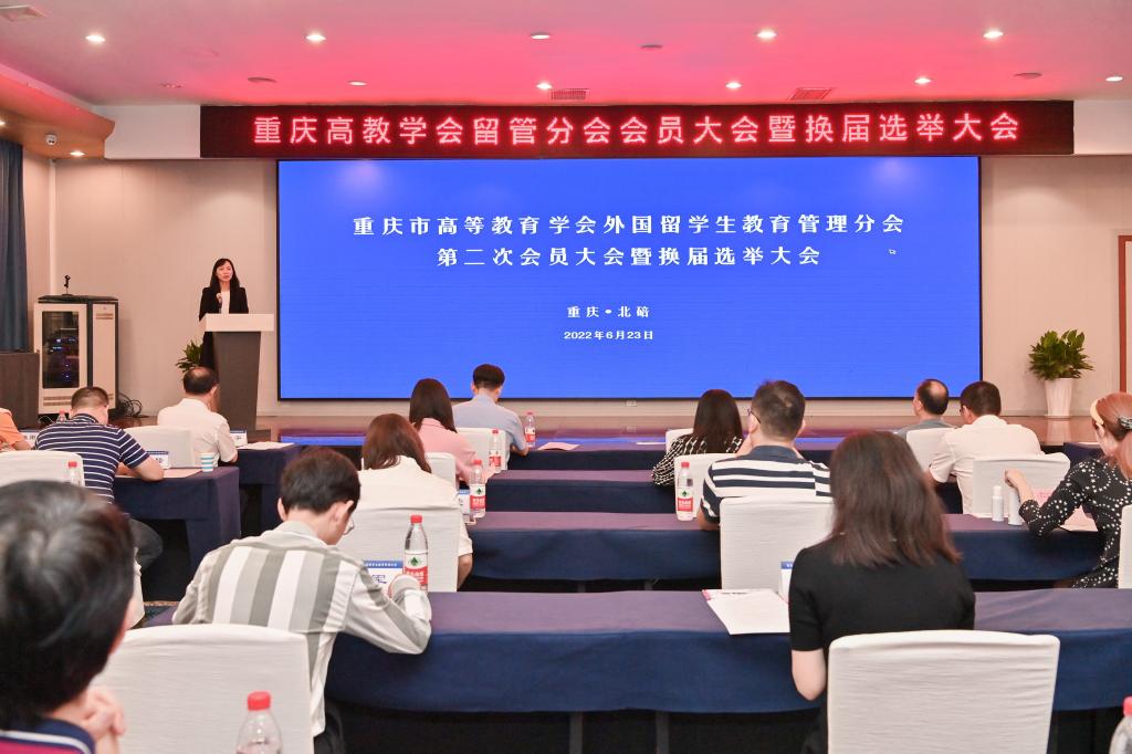 2022年6月23日上午,重庆市高等教育学会外国留学生教育管理分会第二次会员大会暨换届选举大会在重庆北碚隆重举行,刘猛书记被选举为第二届理事会理事长。重庆市教委国际处副处长江燕,重庆市高等教育学会秘书长余志祥出席会议并讲话,37个会员单位代表参加会议,会议由第一届理事会副理事长、学院院长刘承宇主持。