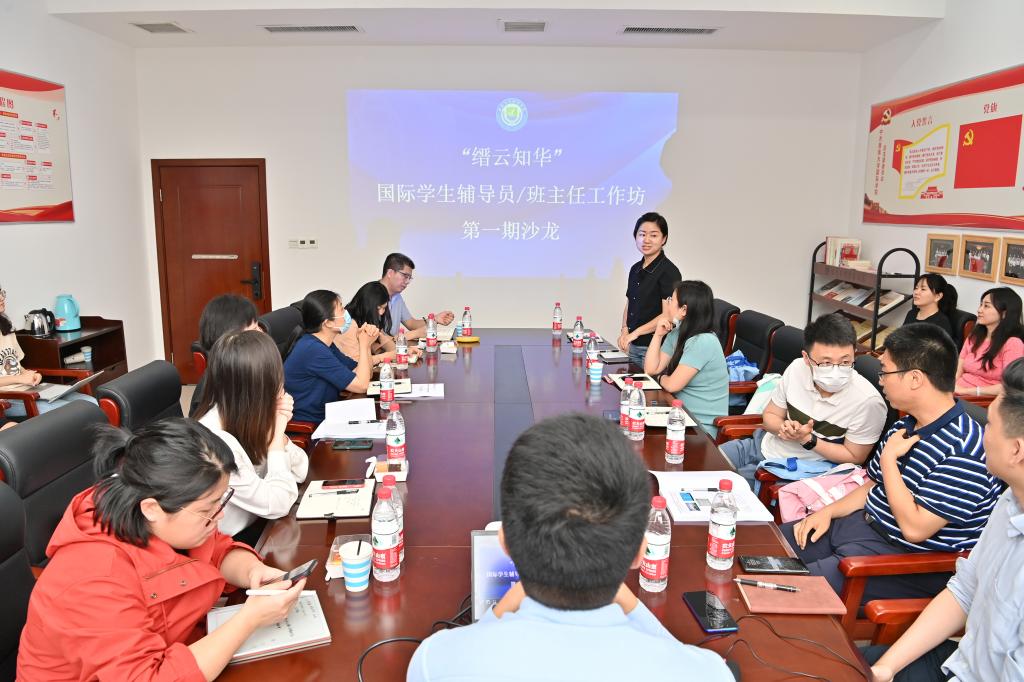 2022年6月2日上午10:30,“缙云知华”国际学生辅导员/班主任工作坊第一期学术沙龙在伟的国际1946bv紫云楼304会议室举办。工作坊全体成员参加,沙龙由工作坊负责人杨昆主持。