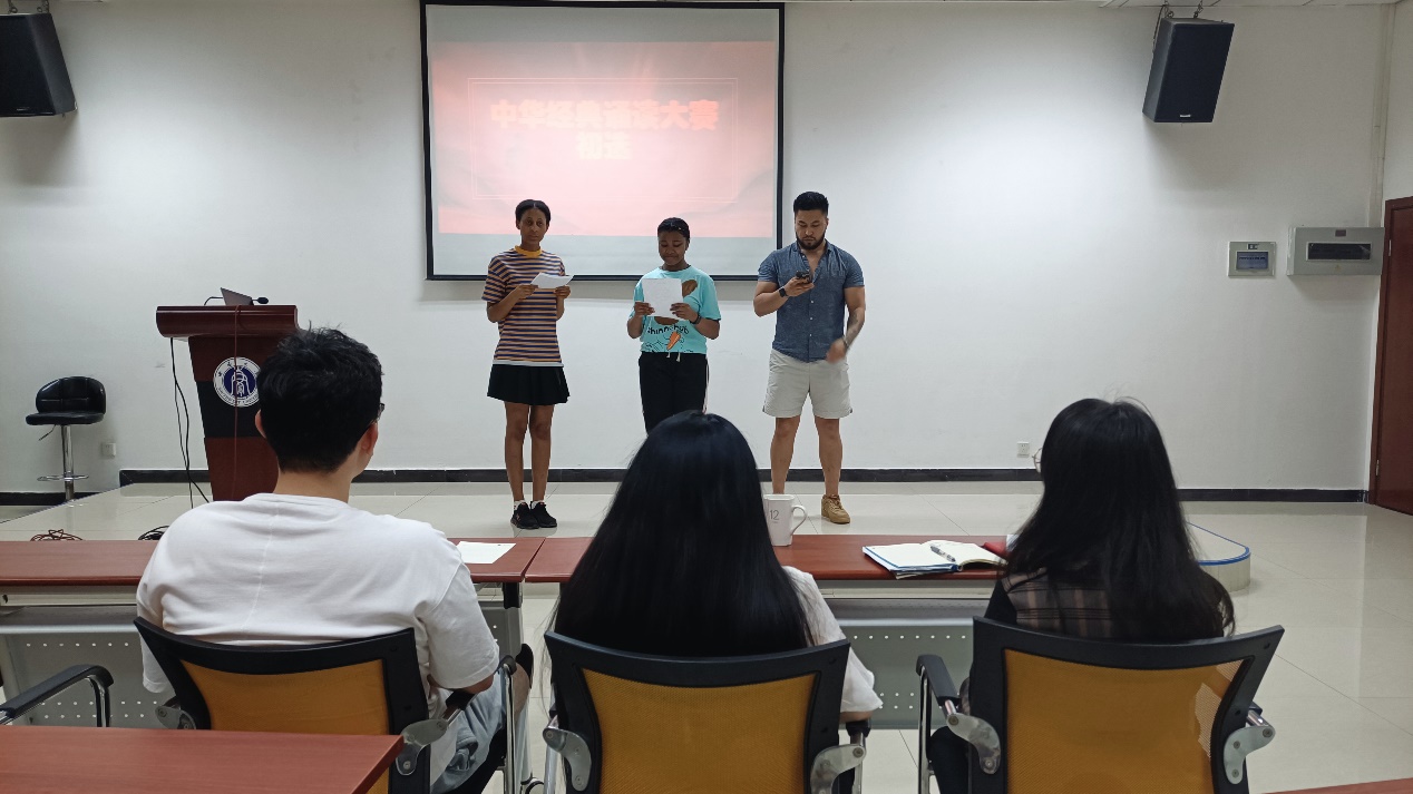 为落实重庆市教育委员会、重庆市语言文字工作委员会发起的“重庆市第八届中华经典诵读大赛”活动,提升我校来华留学生参赛作品的质量和水平,2022年5月6日晚7点,伟的国际1946bv汉教系组织留学生进行了资格选拔赛。本次选拔赛吸引了来自泰国、尼日利亚、喀麦隆、吉尔吉斯斯坦等国籍的留学生参加,采用线下+线上“云”选拔的方式进行。