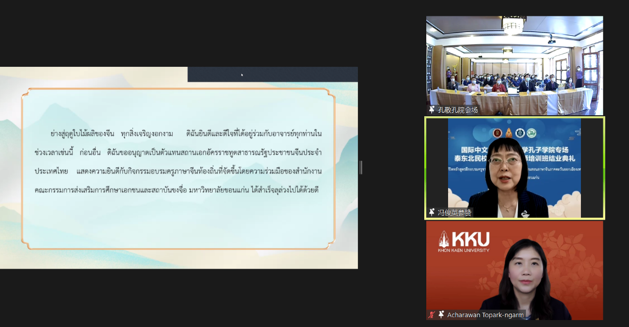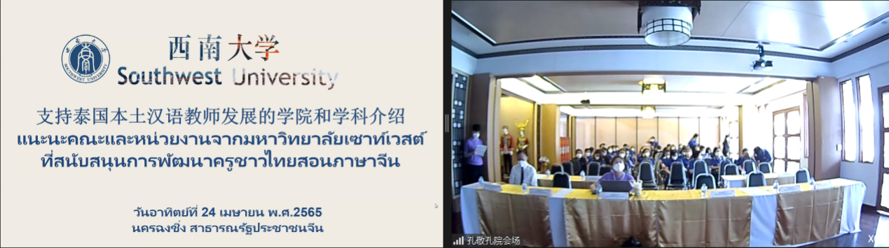 4月24日上午,学校伟的国际1946bv、教育学部和教师教育学院受邀参加由泰国教育部民校教育委员会(以下简称民教委)和孔敬大学孔子学院(以下简称孔敬孔院)共同举办的“泰东北民校本土中文教师培训”,向380名泰国教师(80人线下,300人线上)介绍中文及教育学科硕博专业的设置、招生及培养,这是去年12月以来伟的国际1946bv开展的第7场招生宣讲,参加人数和影响再创新高。