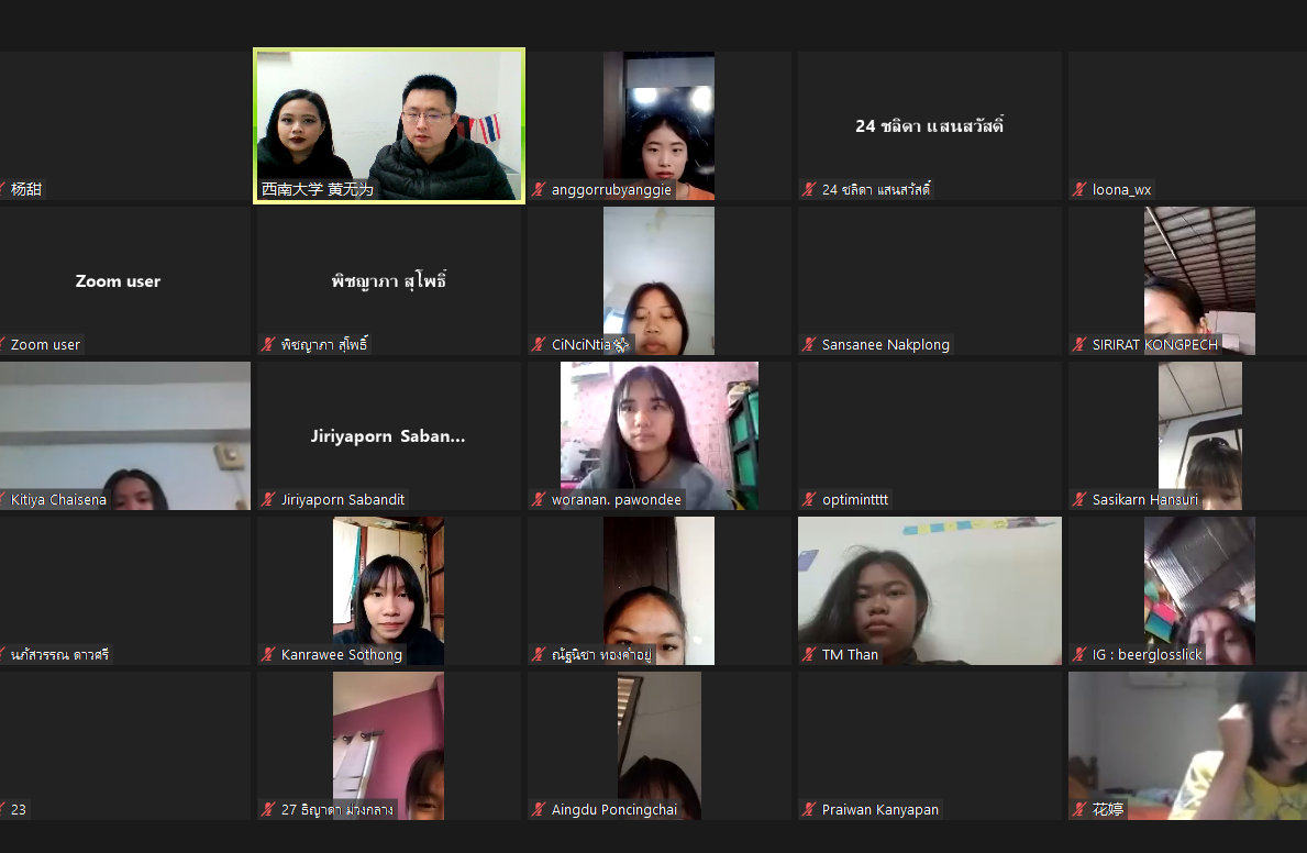 2月26日晚,由中国教育部中外语言交流合作中心主办、学校与泰国孔敬大学孔子学院共同承办的 “汉语桥伟德源自英国1946-泰国孔敬大学孔子学院‘玩转汉语,云游中国’中学生线上项目” 闭营仪式暨成果汇报展顺利举行,汉语国际教育系主任杨甜副教授、泰方负责老师洪邵玲(Mrs.Praiwan Kanyapan)、伟的国际1946bv线上项目授课老师,以及全体项目学生参加仪式。仪式由项目负责人黄无为主持。