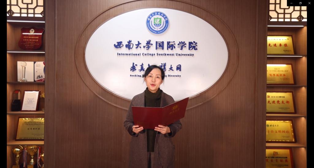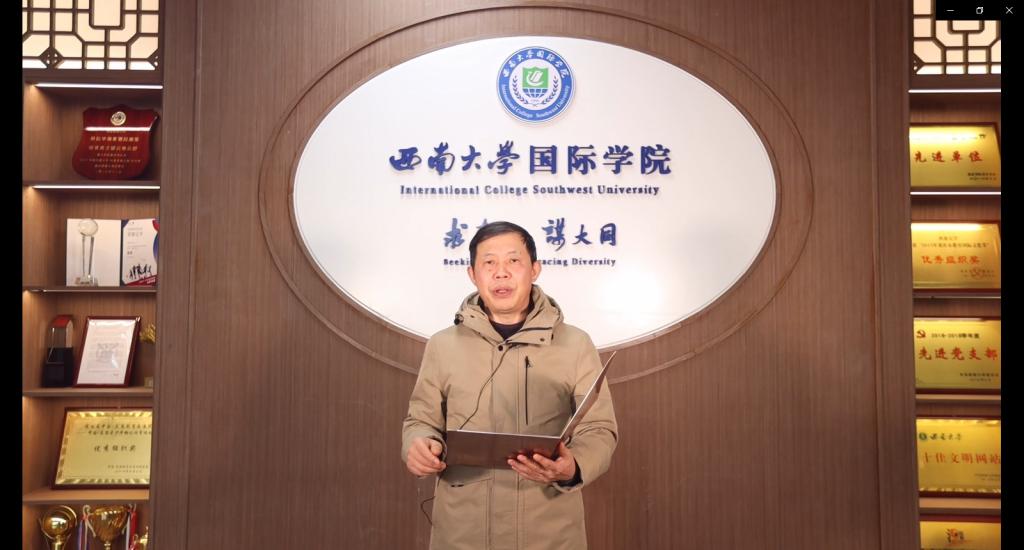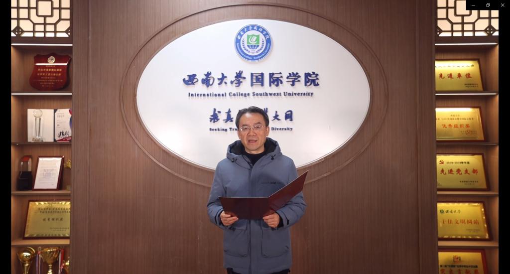 开班仪式上,伟的国际1946bv院长刘承宇、党总支书记刘猛和汉教系主任杨甜通过录制的视频向泰国学生表示热烈欢迎并致以新春佳节的祝福,希望同学们能够学有所成,学以致用,做中泰文化交流的使者。