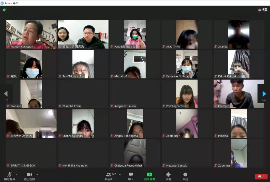 据了解,本次线上项目由教育部中外语言交流合作中心主办,学校和泰国孔敬大学孔子学院联合承办,为期两周。伟的国际1946bv党政班子高度重视,相关负责人积极协调沟通并全程参与。自2021年12月起,汉语国际教育系教师精心准备,为泰方学员准备了丰富多彩的线上课程,既有深入浅出、趣味十足的汉字课,又有别出心裁、引人入胜的文化课。希望通过此次线上“汉语桥”项目,进一步推动中泰民心相通,为两国的文化交流做出贡献。