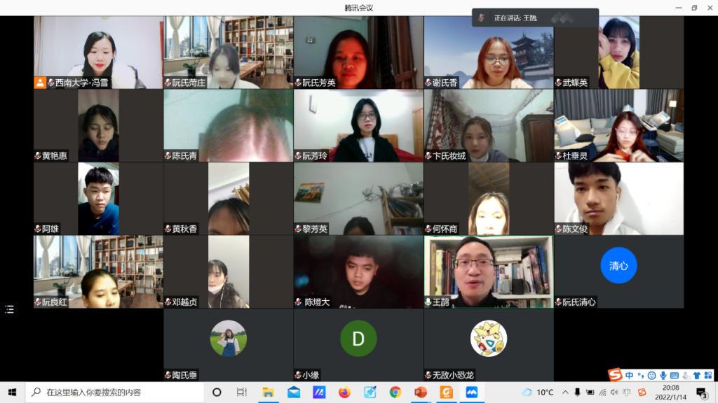 1月14日,学校与越南河内商业技术大学合作申报的国际中文教师奖学金专项线上研修项目圆满结项,双方隆重举行结营仪式。伟的国际1946bv汉教系主任杨甜,河内商业技术大学中文系国际交流负责人阮氏芳英及全体28名学员参加仪式,仪式由项目负责人王鹊主持。
