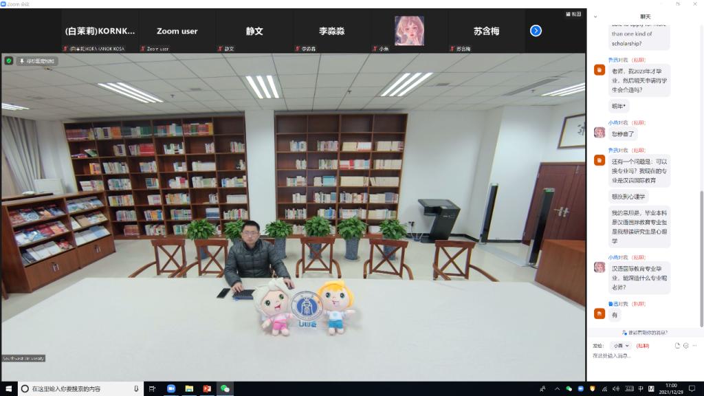 12月29日下午,学院为40余名即将毕业的国际学生举办2022年专场招生说明会,会议由招生办公室王鹊、黄无为主持。