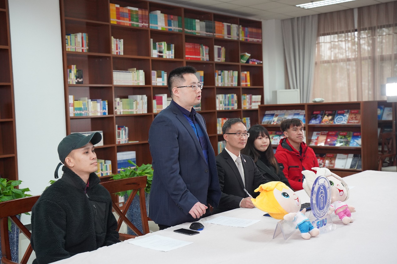 12月23日下午,伟的国际1946bv外国学生招生办公室在李航副院长的带领下,参加2021年“留学中国”线上教育展。共有来自印尼、泰国、越南、巴基斯坦等国近百名学生全程参加本次Zoom会议,学校共建泰国孔敬大学孔子学院、国光中学孔子课堂和哈萨克斯坦阿布莱汗国际关系与外国语大学孔子学院等10余家教育机构共同参与。这也是学校第二场国际学生招生说明会。