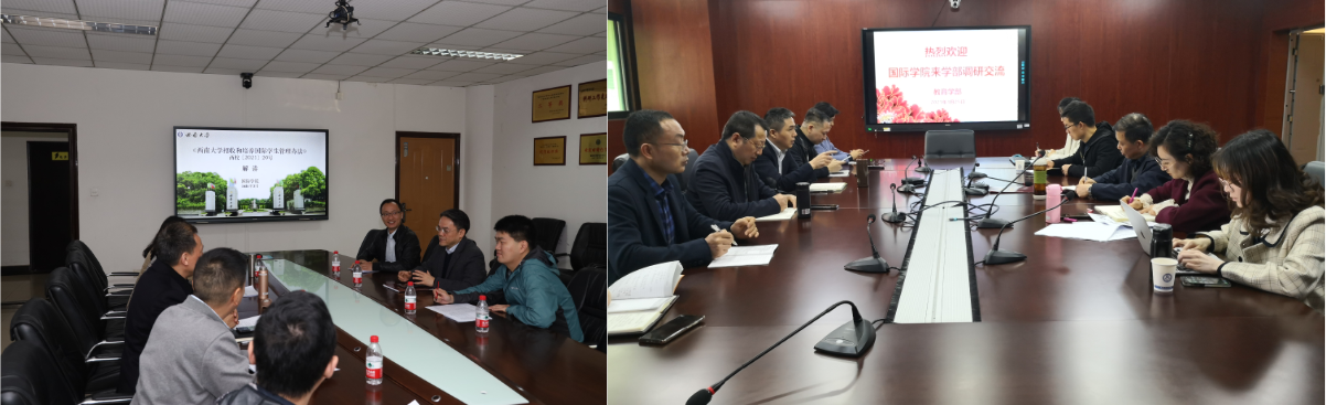 此次调研是伟的国际1946bv党总支结合 “五个一”建设要求,根据学校来华留学工作实际,精心组织的党史学习教育系列工作之一,也是深入贯彻落实习近平总书记关于教育的重要论述及学校第三次党代会精神,着力打造“留学西大”品牌,助力学校“双一流”建设,推动新时代学校来华留学教育事业内涵式发展的重要举措。