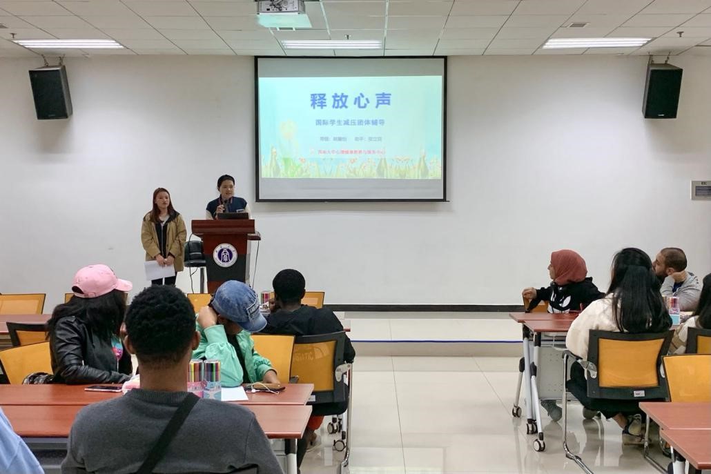 学校高度重视国际学生的心理健康教育,2019年与心理学部合作共建“国际学生心理服务中心”,2020年通过“贯通式心理育人平台”实现了中外学生心理健康教育工作的趋同,此次在学校心理健康教育服务中心阳光心理驿站的支持下,开展了境内国际学生的减压团辅活动,也是后疫情时代国际学生心理健康教育的一次成功尝试。