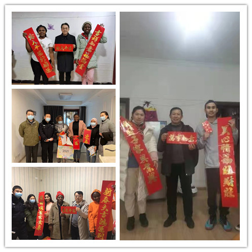 慰问采取学院领导、辖区民警、社区干部三位一体联动方式,学院领导及科长分成八组,逐一看望住在朝阳、天生、北温泉辖区的留学生,送上春节对联、红包以及节日的祝福,询问他们在疫情期间的学习、生活情况,嘱咐他们加强防护,多与家人联系,鼓励他们合理利用时间认真学习,取得更好的成绩。
