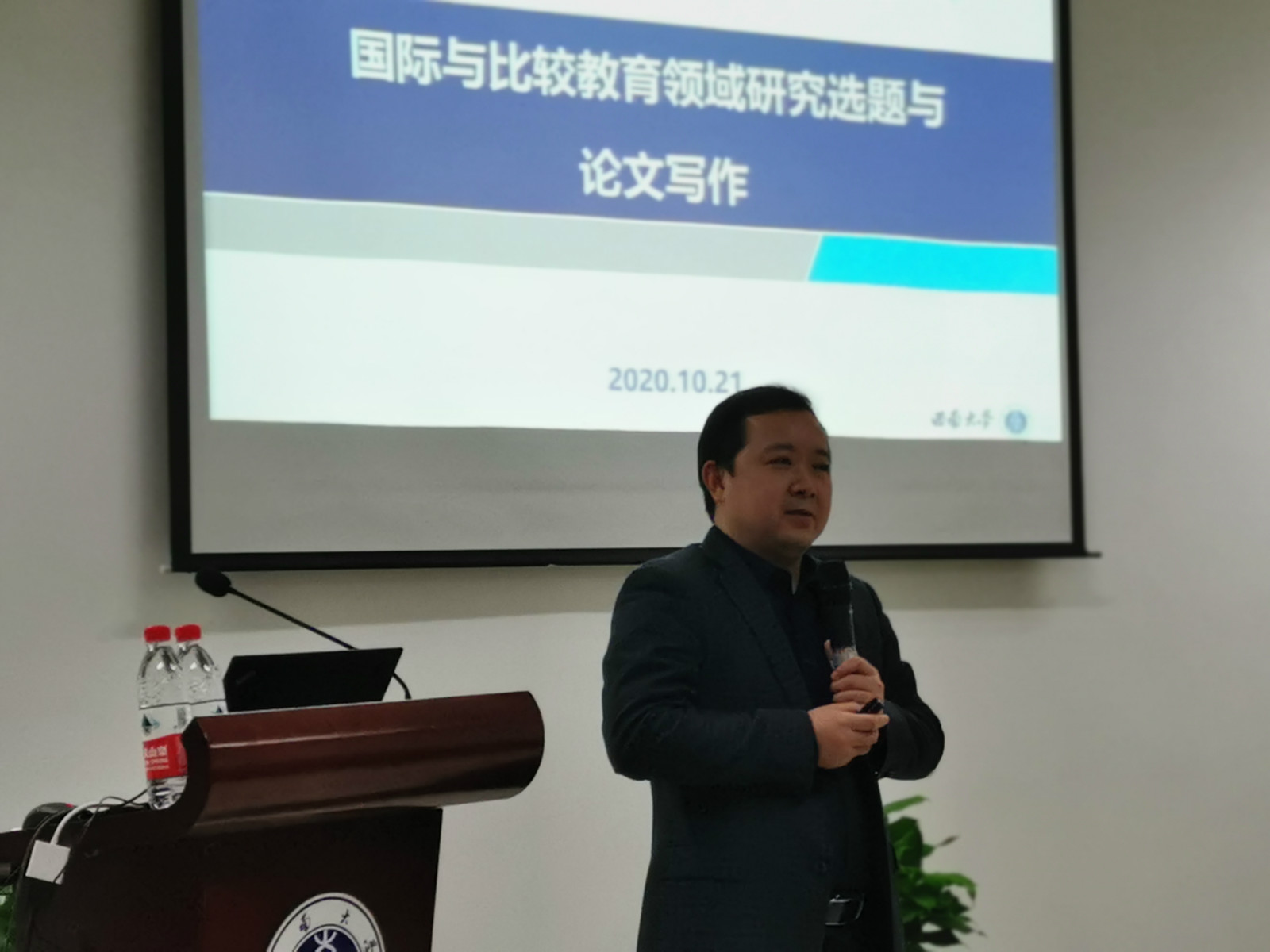 王正青教授围绕如何进行论文选题、如何搭建论文框架、如何做好文章论证、如何查找和阅读一手文献、如何遵循论文写作的学术规范等五个方面,结合自己的论文写作与发表经历,深入浅出的分享了国际与比较教育领域的研究选题与论文写作经验。在最后三十分钟的交流环节,来自伟的国际1946bv和教育学部的博士和硕士研究生踊跃发言,提出了“如何提高投稿的中稿率”“如何处理国内外文献资料阅读中的信息差”“怎样扎根一个有价值的选题进行长期而深入的研究”等问题,同侪之间进行了深入而充分的探讨,王正青教授也针对同学们的困惑进行了细致而专业的点评与解答。