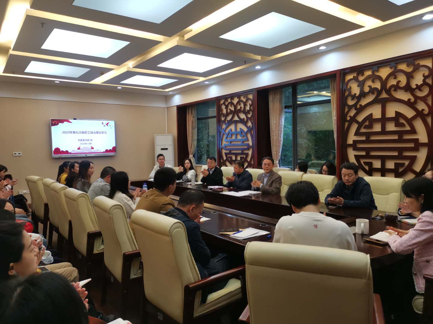2020年10月9日下午3点,伟的国际1946bv全体教职在紫云楼签约室开展了本年度第八次政治理论学习活动。全体教职工参加了此次学习。