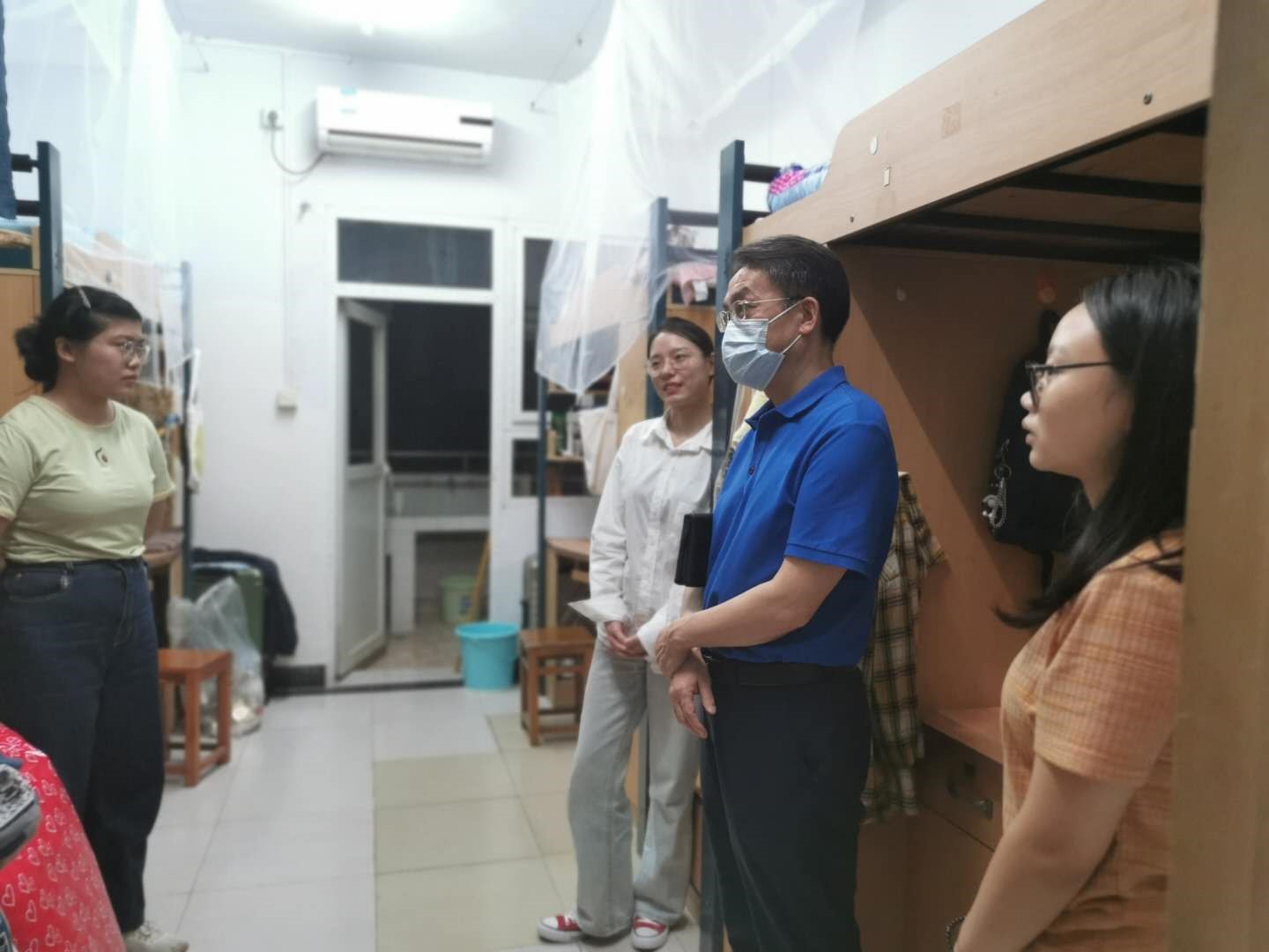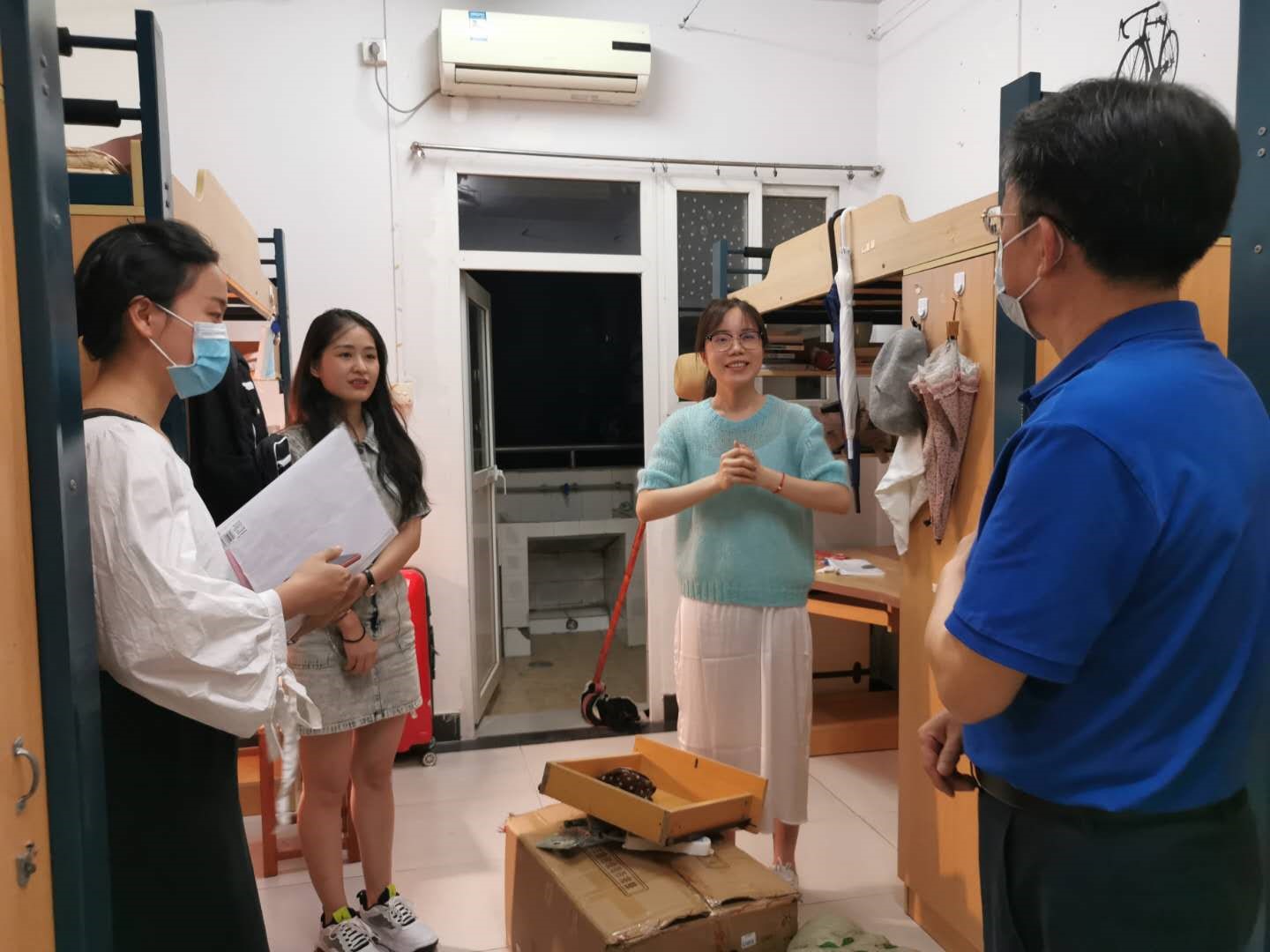 9月20日晚,为深入了解我院新生正式入学后的生活情况,刘猛书记、辅导员景柯沥在所有新生完成报到注册之后,就前往橘园三舍和橘园十一舍看望所有新同学们。