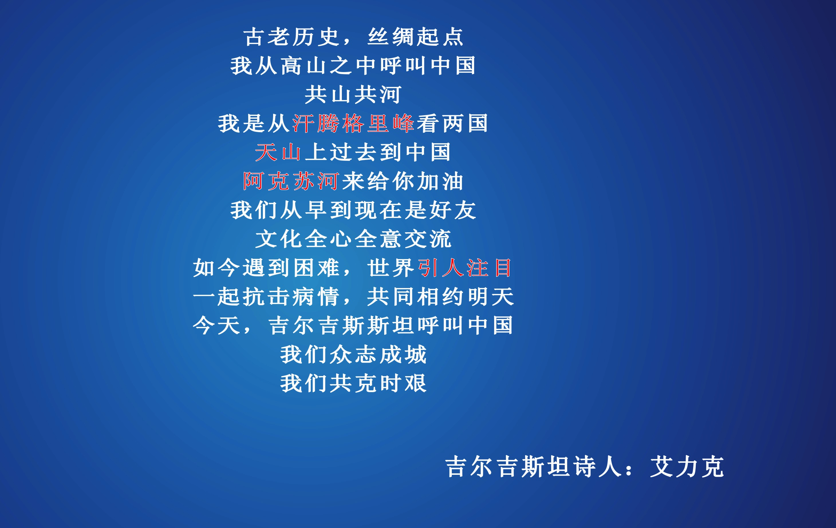 虽然在语言上仍然存在一些问题,但是学生的这种想象力、语言组织能力、语言表达能力仍然给了我极大地震撼。我开始对这样的教学方式产生信心,在我们进行了“奇闻共欣赏”之后,学生们也都非常有成就感,学习的兴致更加高涨。面对疫情,我们不仅要给与学生健康教育、科学教育,同样我们要给与他们精神上的滋养。文化教学一直都是汉语国际教育非常重要的隐性教学的一部分。于是,在学习的后半部分,我开始了以“声援武汉”为主题的语言文化教学。我选择了一首抗疫诗歌《长江,长江,我是黄河》作为学习的主要文本。这首现代诗是由郑州人民广播电台发起,河南省城市广播媒体共同创作的抗疫诗歌。河南省各地广播人分别代表家乡,用铿锵有力的声音呼叫武汉。这首现代诗语言优美,工整上口。通过黄河流域的中原文化与长江流域的荆楚文化的对话,表达了全国各地人民对武汉的声援,更表达了中华民族血脉相连、众志成城、共克时艰的勇气和决心。诗歌中的语言值得模仿,诗歌中的典故值得探究,诗歌所抒发的情感值得体会,诗歌所弘扬的精神更值得学习。在学习中,我们仍然使用任务型教学法,老师先带领大家赏析了第一部分,然后各个同学选择自己感兴趣的一部分,带领大家赏析,最后,每个人都仿写了诗歌。