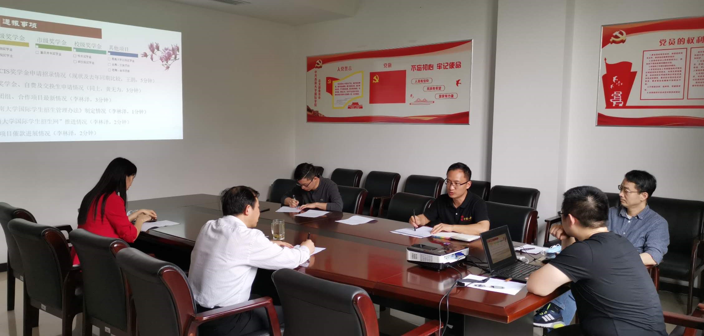 5月7日,伟的国际1946bv在304会议室召开2020年首场国际学生招生录取专题会,刘承宇院长、李航副院长,以及招生办公室工作人员参加会议。