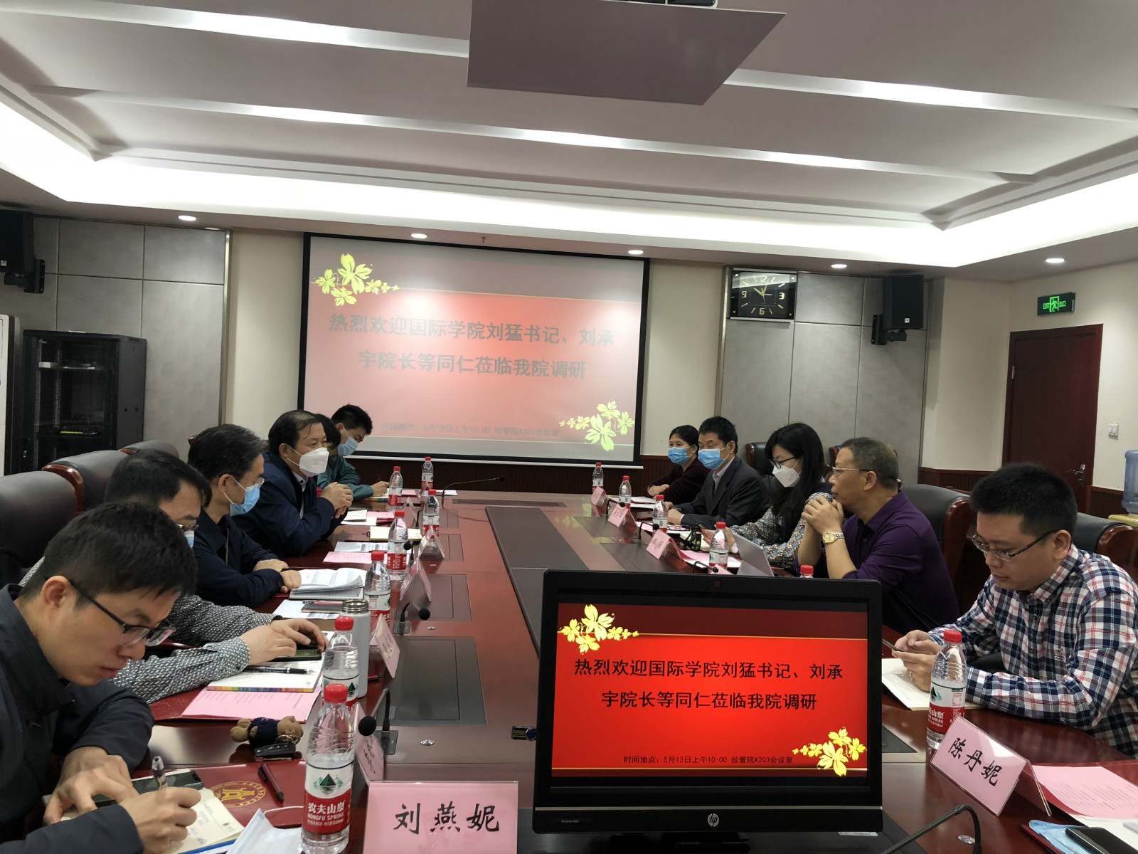 5月13日上午,伟的国际1946bv刘猛书记、刘承宇院长、张家政副院长、学工办主任陈雨曦、招生办主任李林泽、学工办杨昆、教务办刘燕妮一行7人赴经济管理学院调研,经济管理学院院长兼党委书记祝志勇等学院领导和相关工作人员参加调研会。