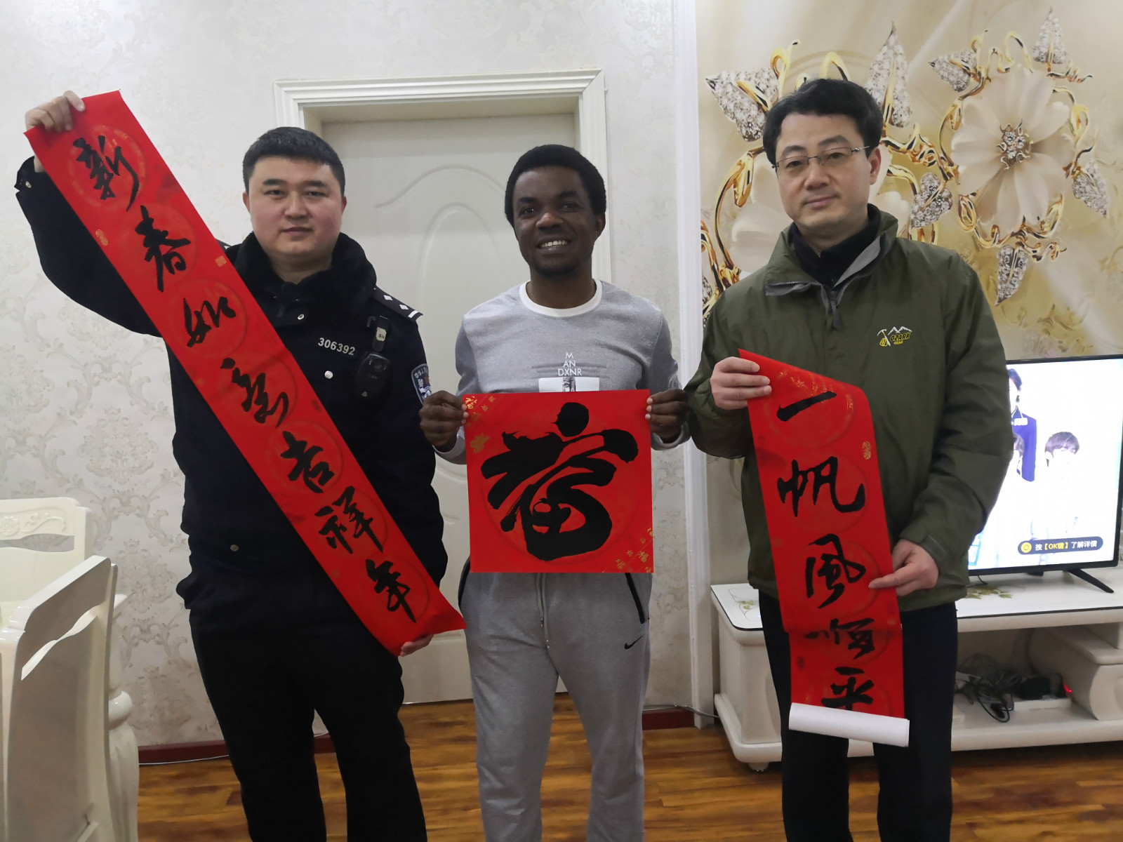 下午,学院领导分四组,挨家挨户看望租住在文星湾、天生桥、北碚老城区的留学生,给留学生带来新年的祝福和问候,送上具有中国特色的春联和福字,询问他们在寒假期间的学习、生活情况,嘱咐他们防寒保暖,多与家人联系,鼓励他们利用假期时间认真学习,来年取得更好的成绩。