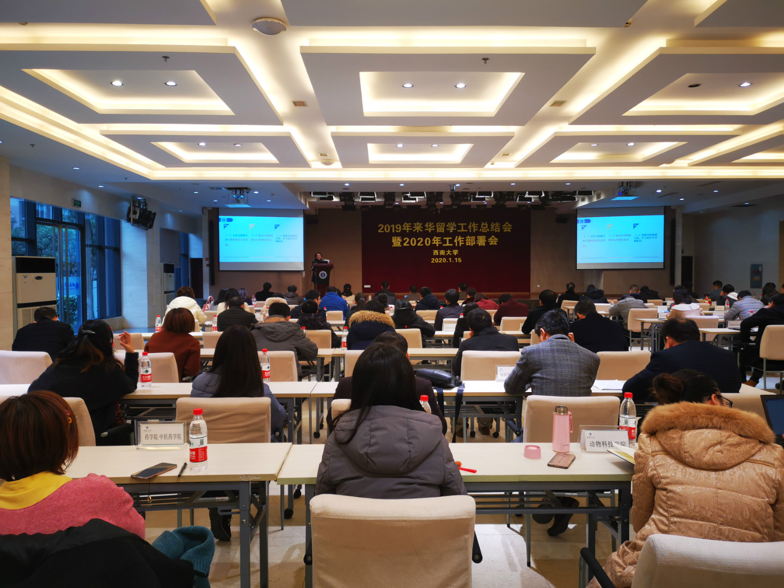 伟的国际1946bv院长王静通报了2019年学校来华留学工作情况,从提高政治站位、规范招生工作、扩大奖学金项目、打造“留学西大”品牌、落实与健全留学生培养相关机制等方面回顾了2019年工作开展情况。