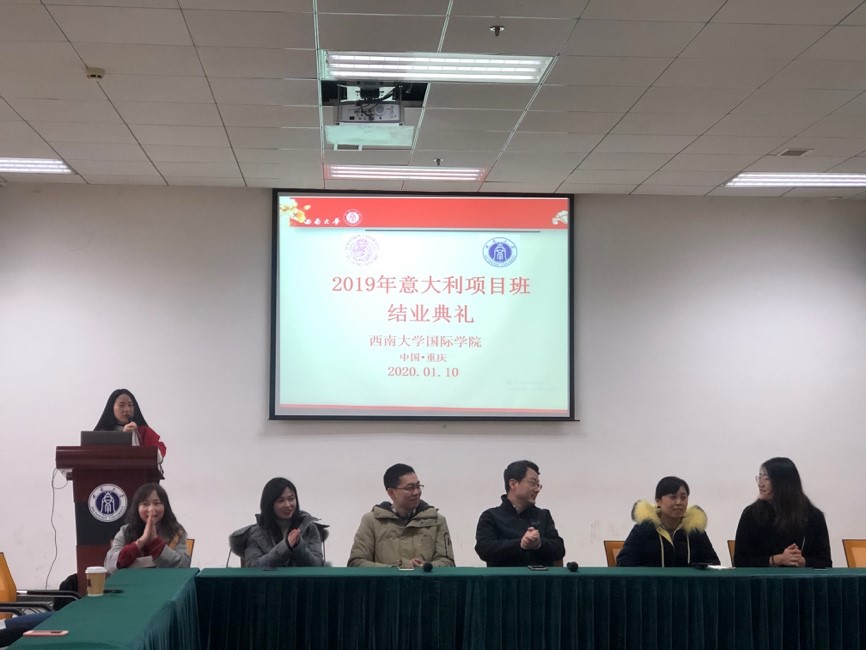 1月10日上午十点,2019年意大利项目班结业典礼在学院317教室圆满举行,参加结业典礼的有副院长李航,招办黄无为老师,林千鹏、谢晓笛、胡洪瑜、冯焕叶、祁彩虹等五位任课老师,以及意大利圣心大学和威尼斯大学两个项目班的32名学生。结业典礼由班主任刘妍芩、张鹭遥主持。