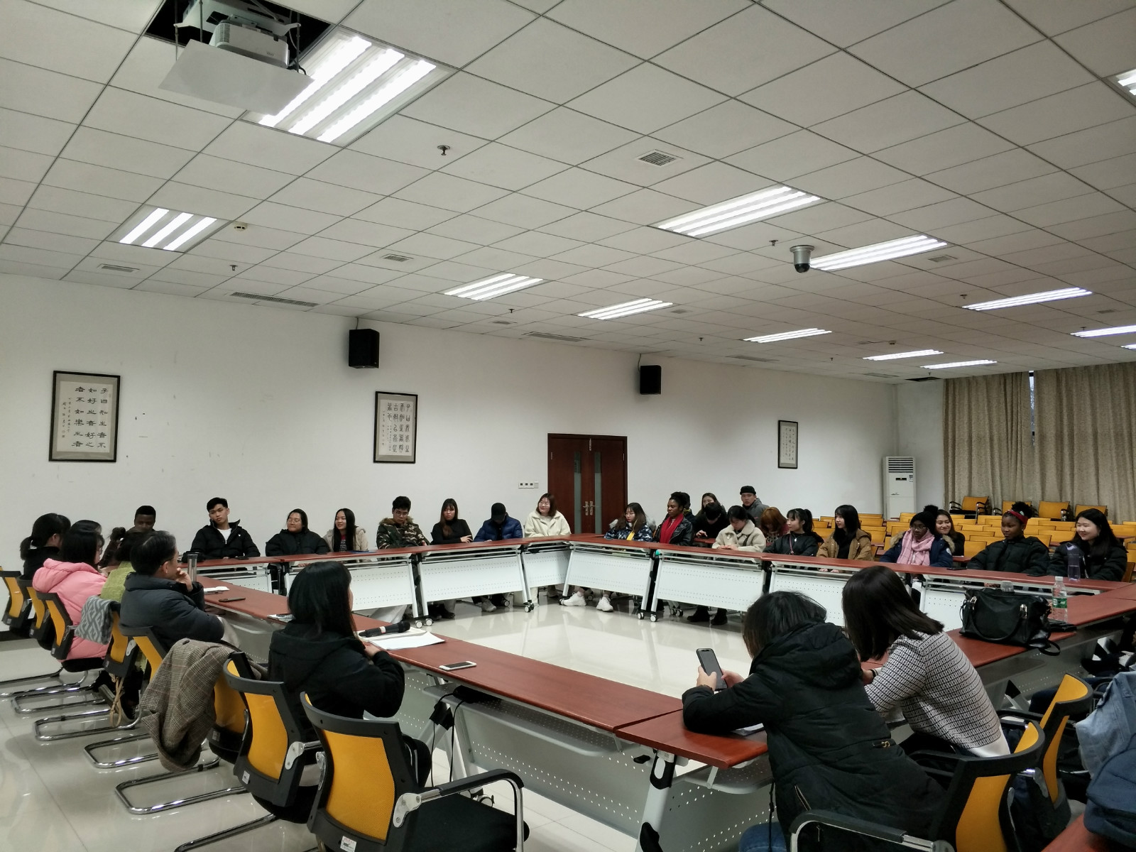 会议首先回顾了合唱团在万州“第二届世界大河歌会”活动上的演出视频,并观看合唱团成长主题短片。之后新老团员学生代表西素达(老挝)、李凯(尼日利亚)以及胡洪瑜老师依次发言。他们纷纷表示,伟的国际1946bv五洲合唱团给来华留学生提供了一个很好的交流平台。因为喜欢音乐相聚在这里,这儿不仅可以结识各个国家的朋友,同时能更好地学习中文歌曲,了解中国文化。