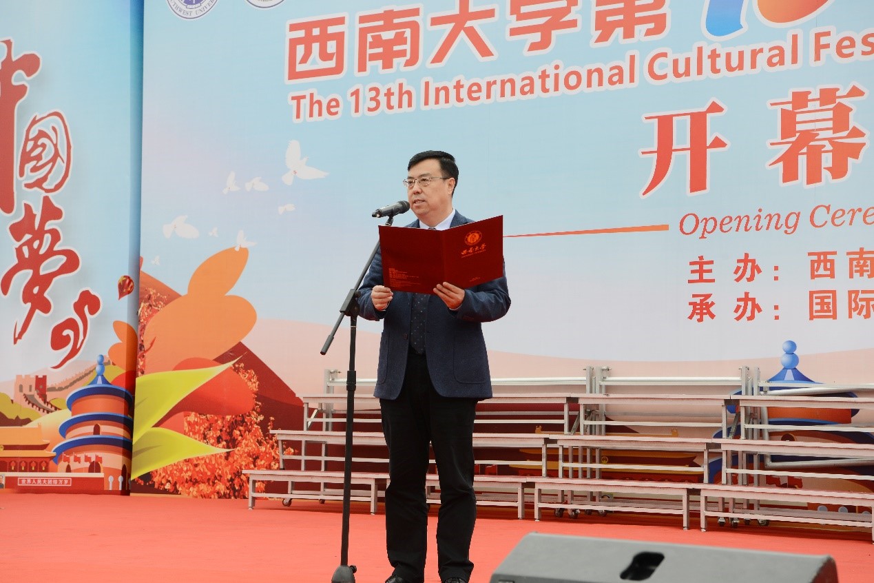 王进军副校长致开幕辞。国际文化节是学校一年一度的国际文化交流盛会,是学校校园文化不可或缺的一部分,是中外学生期盼的嘉年华,展现了学校多姿多彩的国际化风貌,也体现了学校兼容并蓄的办学理念。王进军副校长希望大家能继续秉持开放包容,互学互鉴的理念,做“一带一路”倡议的积极践行者,成为推动中外文明交流的纽带,让彼此文明美美与共。