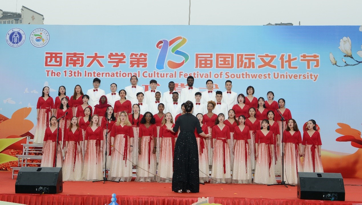 开幕式气球启动仪式后,来自不同国家的留学生联袂献上精彩的歌舞表演,歌含情、舞带意,堪称视听盛宴。俄罗斯和白俄罗斯学生带来古老浪漫的伊万库帕拉节优美舞蹈,四国同学联唱旋律优美的《另一个天堂》,北碚两江名居小学龙舞队带来活灵活现的《父子龙》,热情奔放的非洲舞蹈引发全场起舞,伟的国际1946bv五洲合唱团师生演唱的《我和我的祖国》等曲目将现场气氛推到高潮。