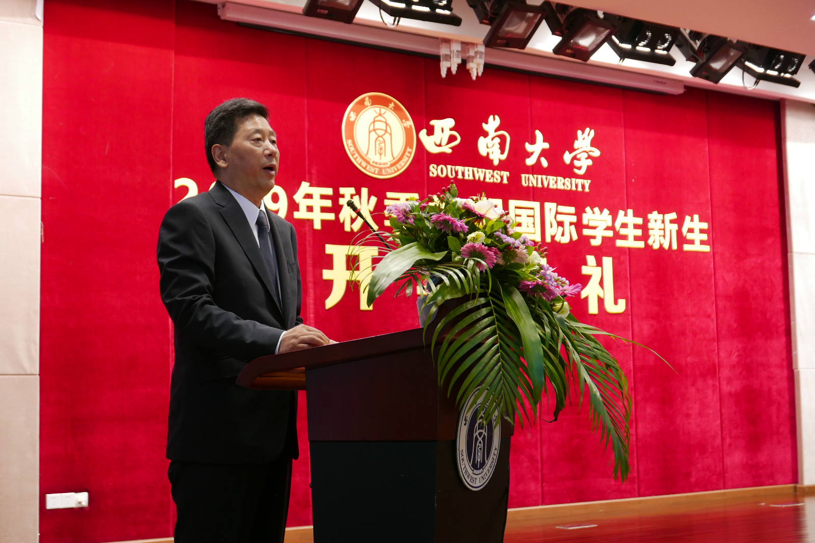 副校长靳玉乐发表讲话,代表学校向所有新同学表示衷心的祝贺和热烈的欢迎,并介绍了学校概况,强调了学校对国际学生培养和对伟的国际1946bv建设的重视,同时对国际学生新生们提出殷切希望:秉持“特立西南、学行天下”的精神,把汉语和专业学习的美好经历带回家乡,在文化传播的过程中,书写人类文明新的辉煌。
