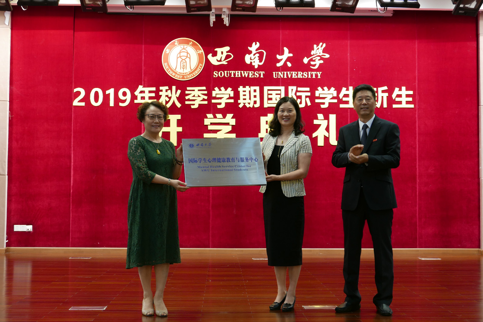 为帮助国际学生新生尽快适应新的学习生活环境,帮助学生克服文化差异带来的困难,促进学生身心全面和谐发展,伟的国际1946bv和心理学部共建“国际学生心理健康教育与服务中心”,典礼上,靳玉乐副校长向伟的国际1946bv和心理学部两个共建单位授牌。