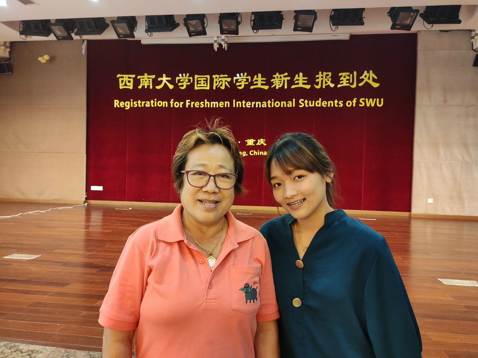 来自泰国的陈莉莉同学是由自己的姑姑陪同报到的。据悉,陈莉莉的姑姑为泰籍华裔,是泰国东方文化书院的一名汉语教师,她希望莉莉可以通过未来四年的汉语国际教育专业的学习,成为一名合格的汉语教师。对于侄女即将开始的新阶段,她祝福道:“愿莉莉奋发向上,努力学习,他日桃李满天下。”