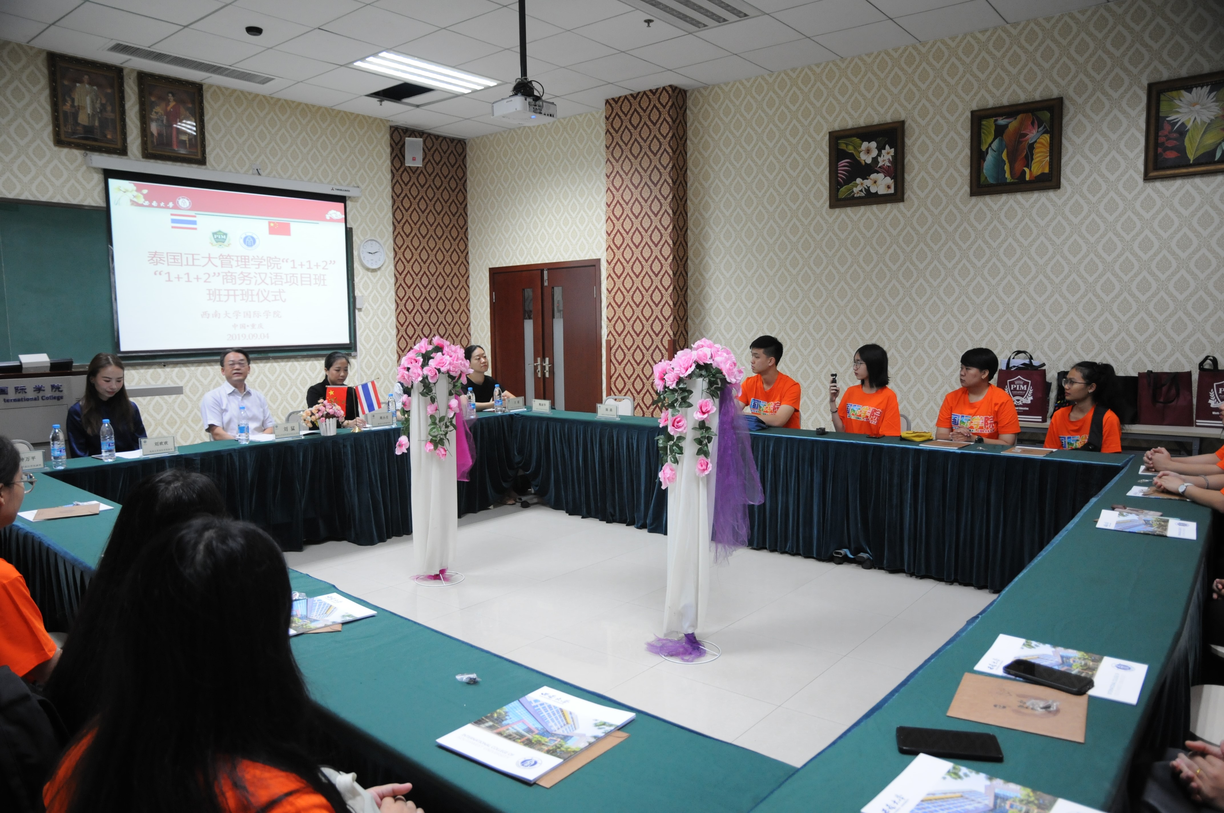 我校与泰国正大管理学院本科学生“1+1+2”联合培养项目从2011年起至今已有八年。该项目立足于提高学生以汉语为工具进行国际商务活动的能力,培养优秀的跨文化交际商务人才。今年来自泰国正大管理学院的这12名学生将在我校完成1年的专业学习和4个月的在岗实习。