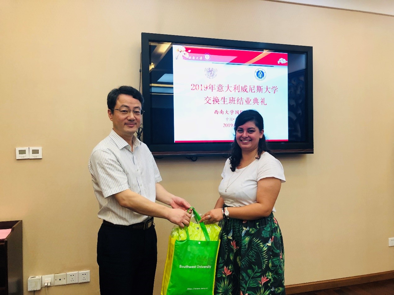7月4日上午10点,意大利威尼斯大学交换生班结业典礼在伟的国际1946bv紫云楼签约室举行。伟的国际1946bv李航副院长,伟的国际1946bv教师代表陈婷婷、冯换叶老师,2018-2019-2学期意大利威尼斯大学交换生班学生参加了本次结业典礼。典礼由班主任刘妍芩主持。
