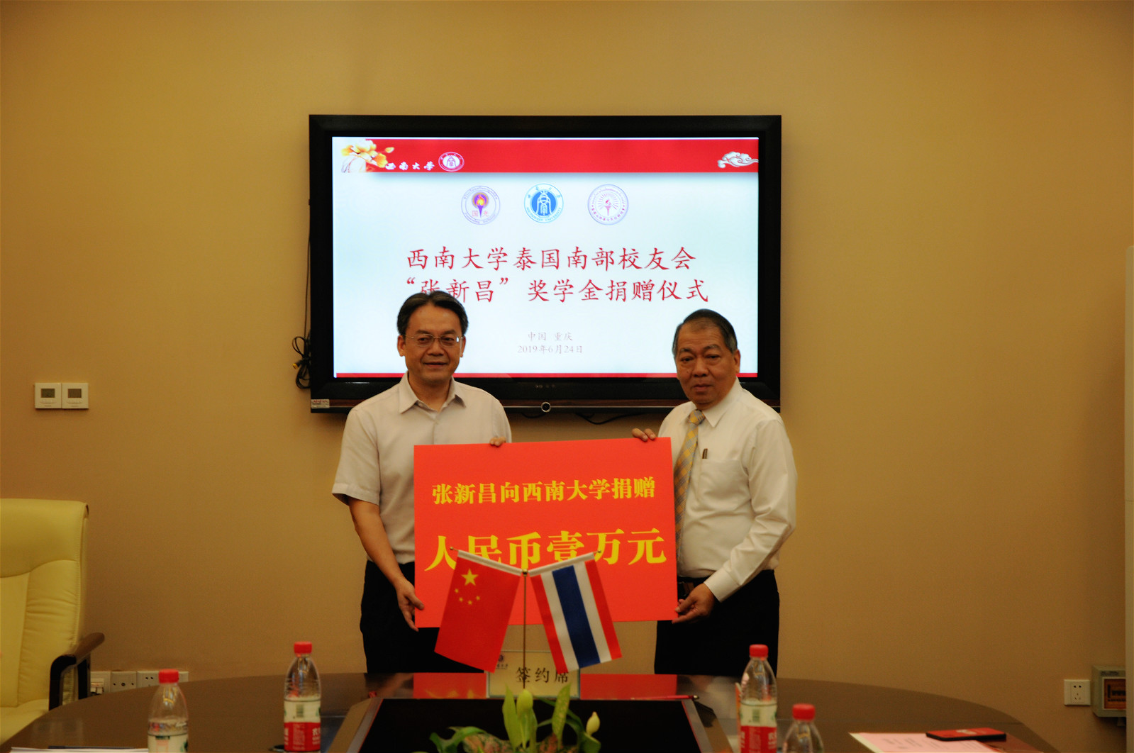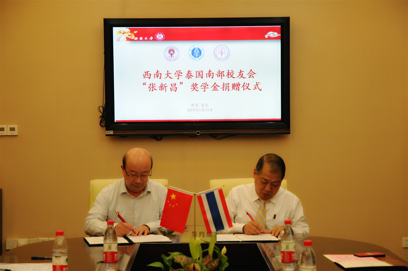 在一片热烈的掌声中,受赠双方代表龚常智秘书长和张新昌先生 共同签订了捐赠协议。为支持伟德源自英国1946来华留学教育事业的发展,感谢伟的国际1946bv对国际学生的精心培养,张新昌先生向学校捐赠1万元人民币,设立泰国校友会“张新昌奖学金”,用以奖励品学兼优的泰国南部学生。